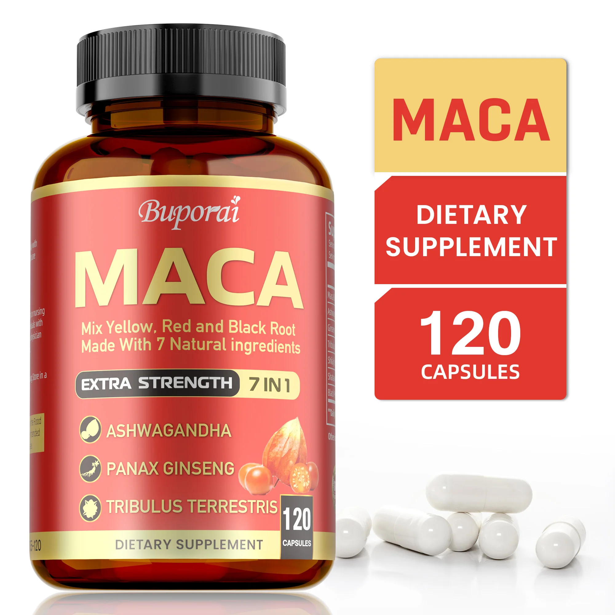 ๐ฟ 7 in 1 Extra Formula Booster with High Absorption Maca Extract Complex; Support strength, muscle mass, energy production and immune system for men & women.